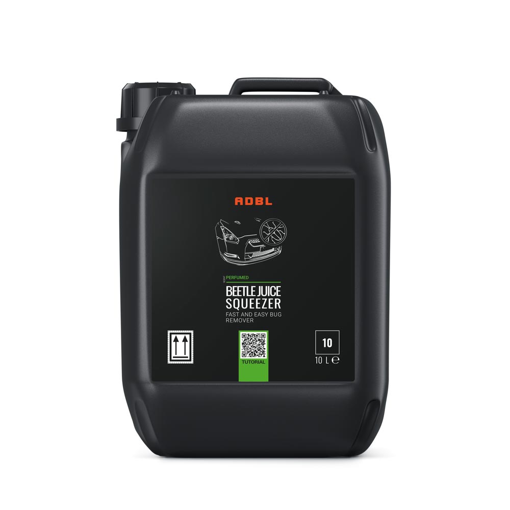 ADBL Beetle Juice Squeezer 10L to skuteczny środek przeznaczony do usuwania zaschniętych pozostałości po owadach z karoserii samochodu. Specjalnie opracowana formuła szybko rozpuszcza zabrudzenia organiczne, umożliwiając ich bezpieczne usunięcie bez konieczności intensywnego tarcia i bez ryzyka uszkodzenia lakieru.